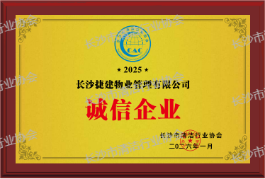 长沙捷建物业管理有限公司在2025年度中荣获《质量服务双优企业》《十佳清洁服务企业》《诚信企业》